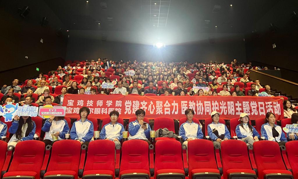 随后,医师团队在学院绘画厅,为师生提供视力检测等免费医疗服务,并围绕“青少年近视防控、眼疾预防”开展科普宣传。在红色主题观影活动环节,双方党员干部、学生代表集体合唱《没有共产党就没有新中国》,面向党旗重温入党誓词,回顾入党初心,共同观看志愿军题材电影《浴血和平》,在革命先烈的奋斗故事中传承红色基因,强化使命担当。